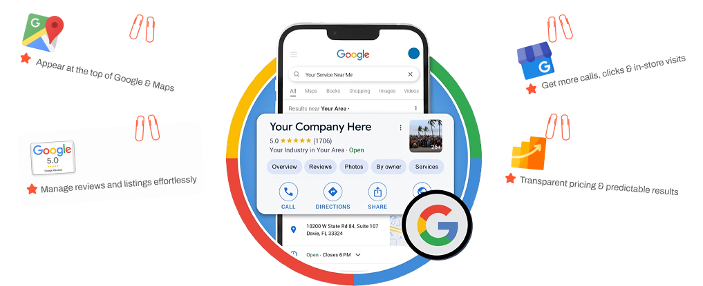 Optimize your Google Business Profile to appear at the top of local search results and maps.